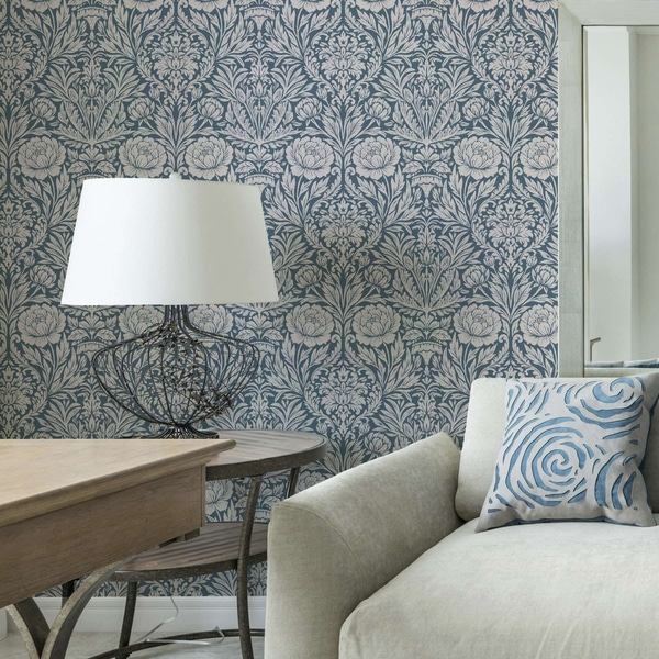 Tapet Damasc clasic, albastru intens pe fond albastru deschis