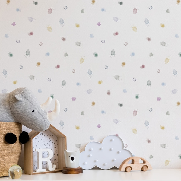 Tapet Iepurași cu fundițe, dungi roz și inscripții mici