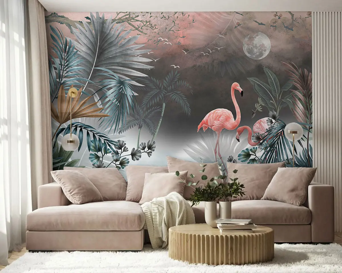 Fototapet Flamingo și plante Nr. u78601
