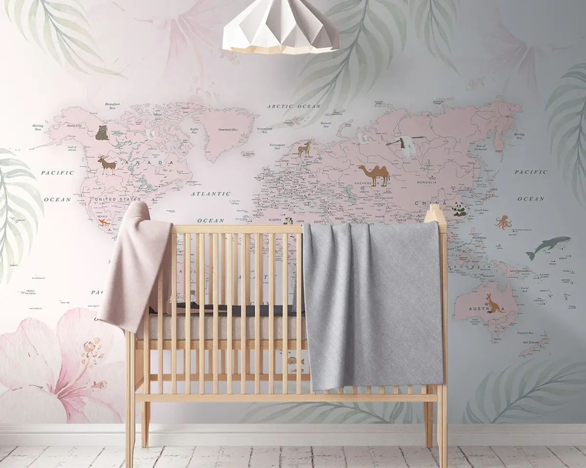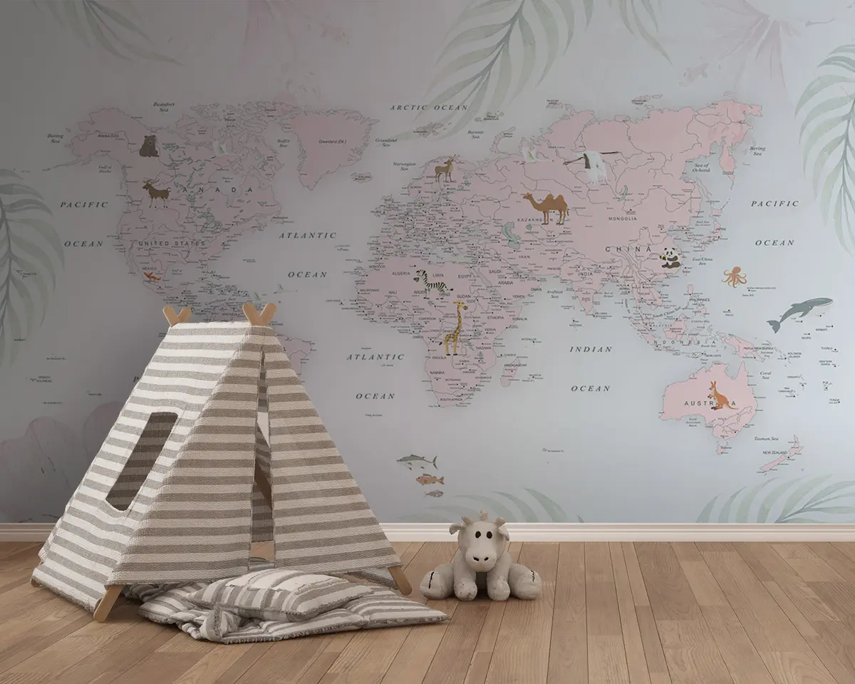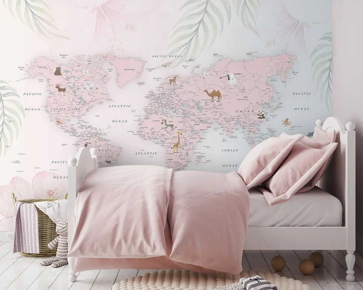 Fototapet Harta lumii pentru fete în stil roz Nr. u79832