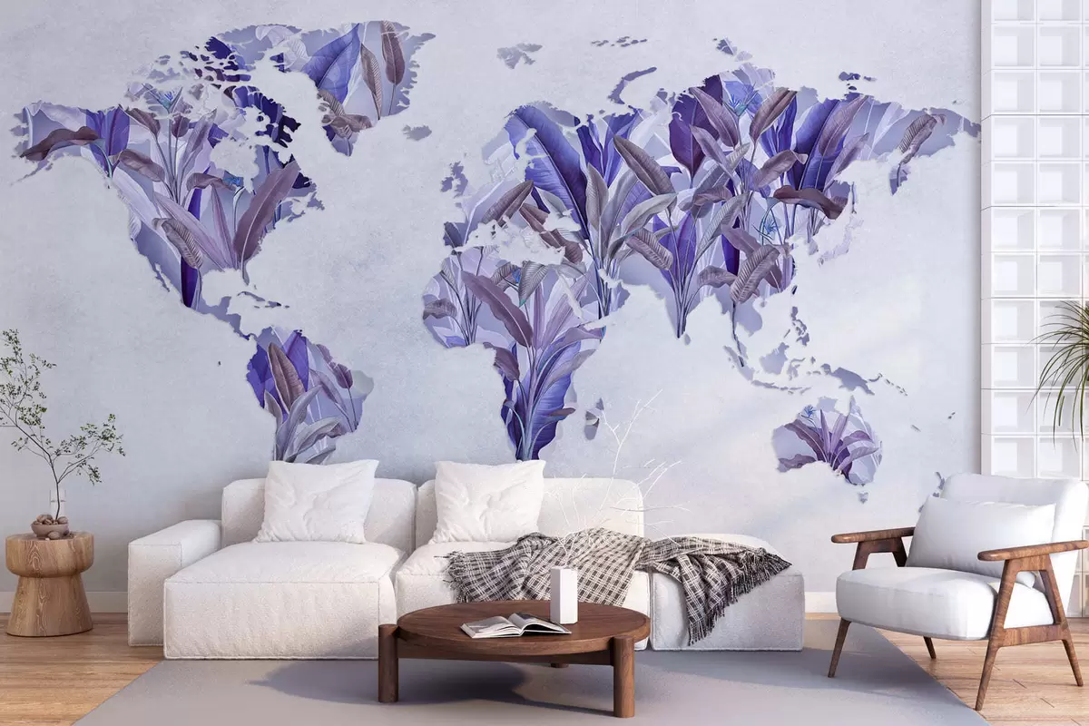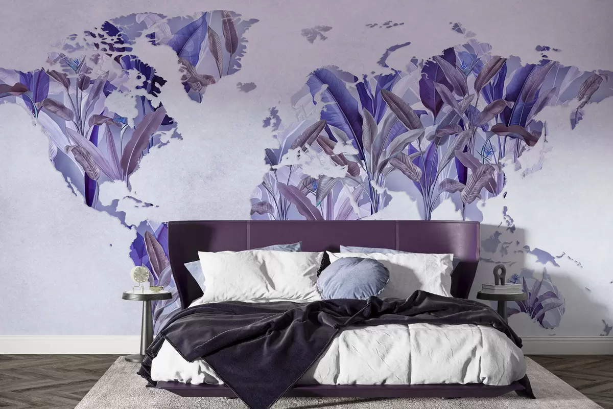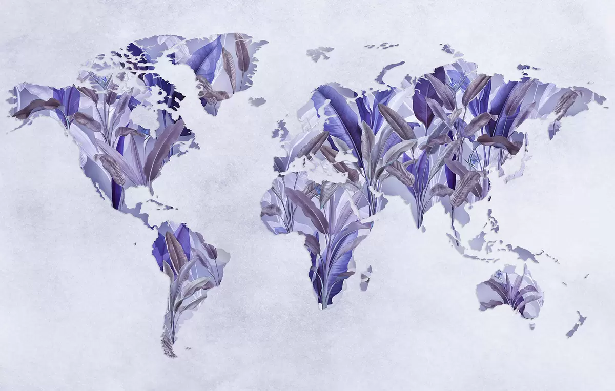 Fototapet O hartă a lumii de culoare violetă, realizată din frunze de bananier Nr. c00007v1