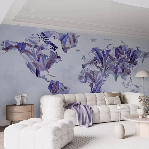 Fototapet O hartă a lumii de culoare violetă, realizată din frunze de bananier Nr. c00007v1