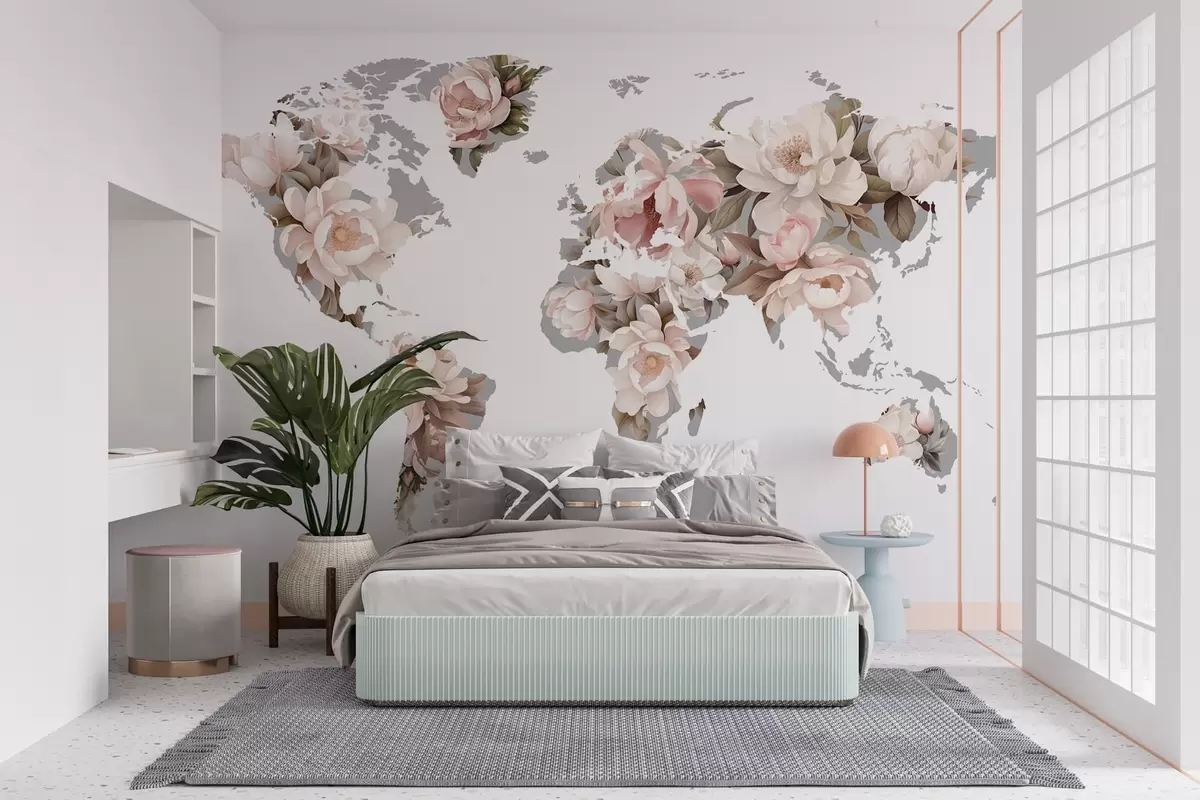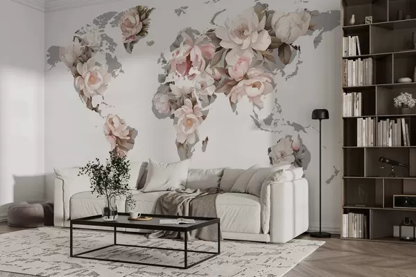 Fototapet O hartă a lumii delicată și cremoasă, realizată din flori Nr. c00008