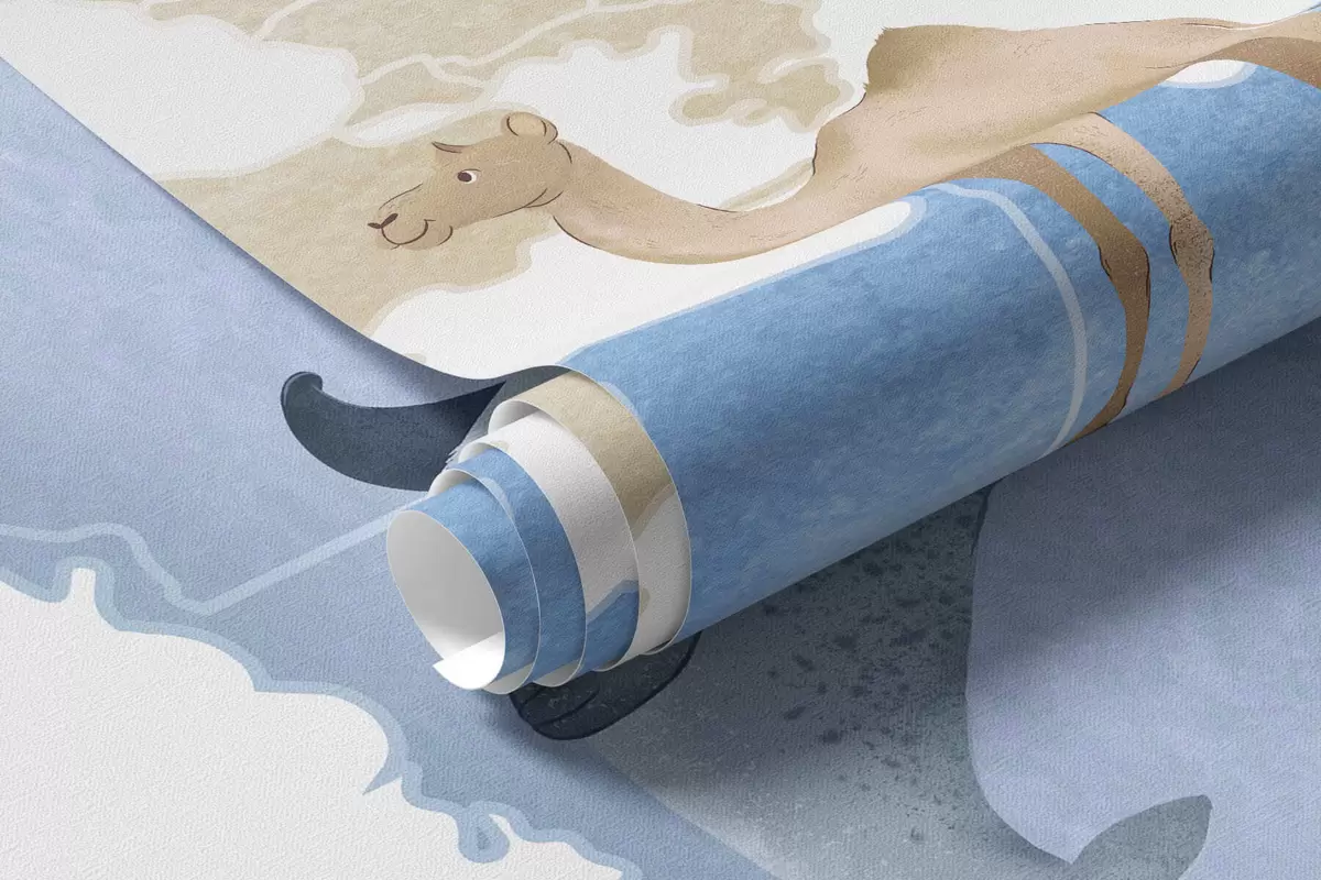 Fototapet O hartă albastră în stil acuarelă, cu animale. Etichete în limba engleză Nr. c00012env1