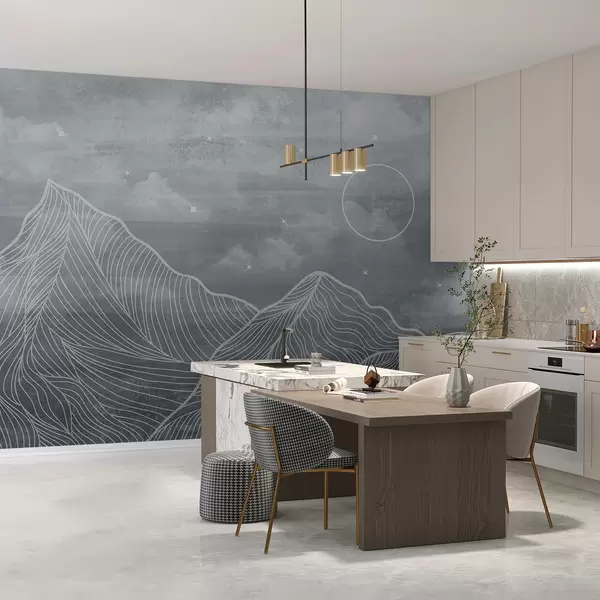 Fototapet Textura Grunge cu nori și munți, culoare gri, tema naturii Art Nr. u98838v1