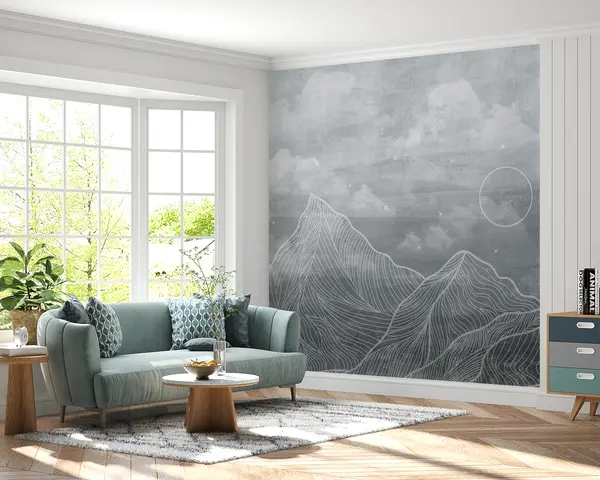 Fototapet Textura Grunge cu nori și munți, culoare gri, tema naturii Art Nr. u98838v1