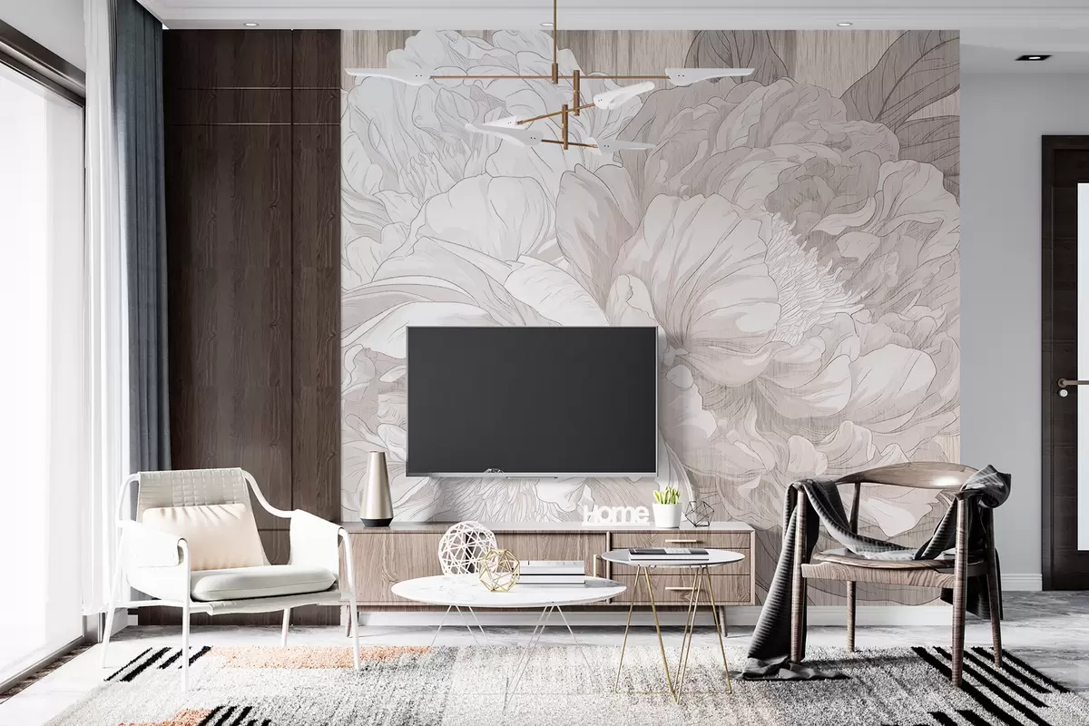 Fototapet Flori mari de bujor texturate în nuanțe de bej Nr. w01141