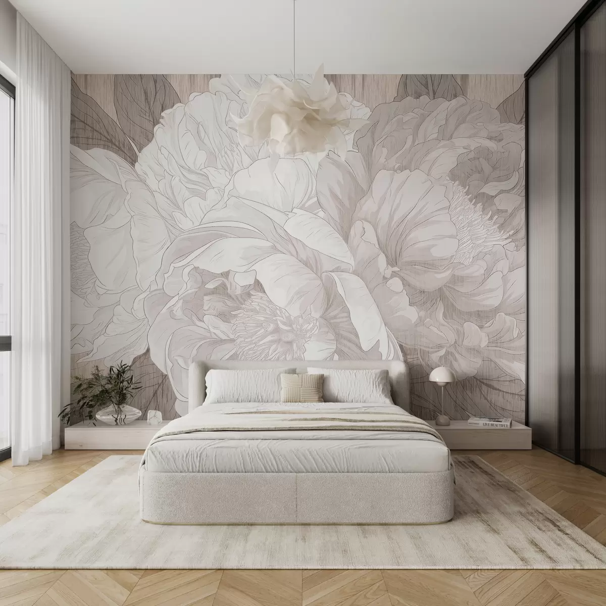 Fototapet Flori mari de bujor texturate în nuanțe de bej Nr. w01141