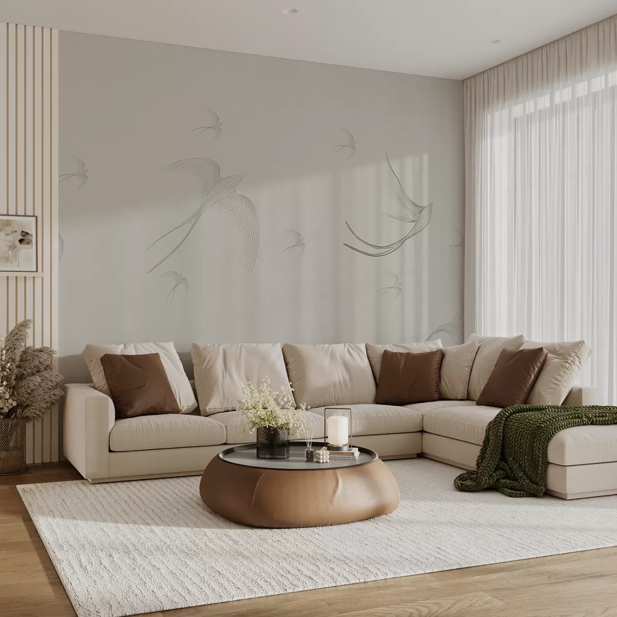 Fototapet Rândunici liniare pe un fundal bej Nr. w01264v1