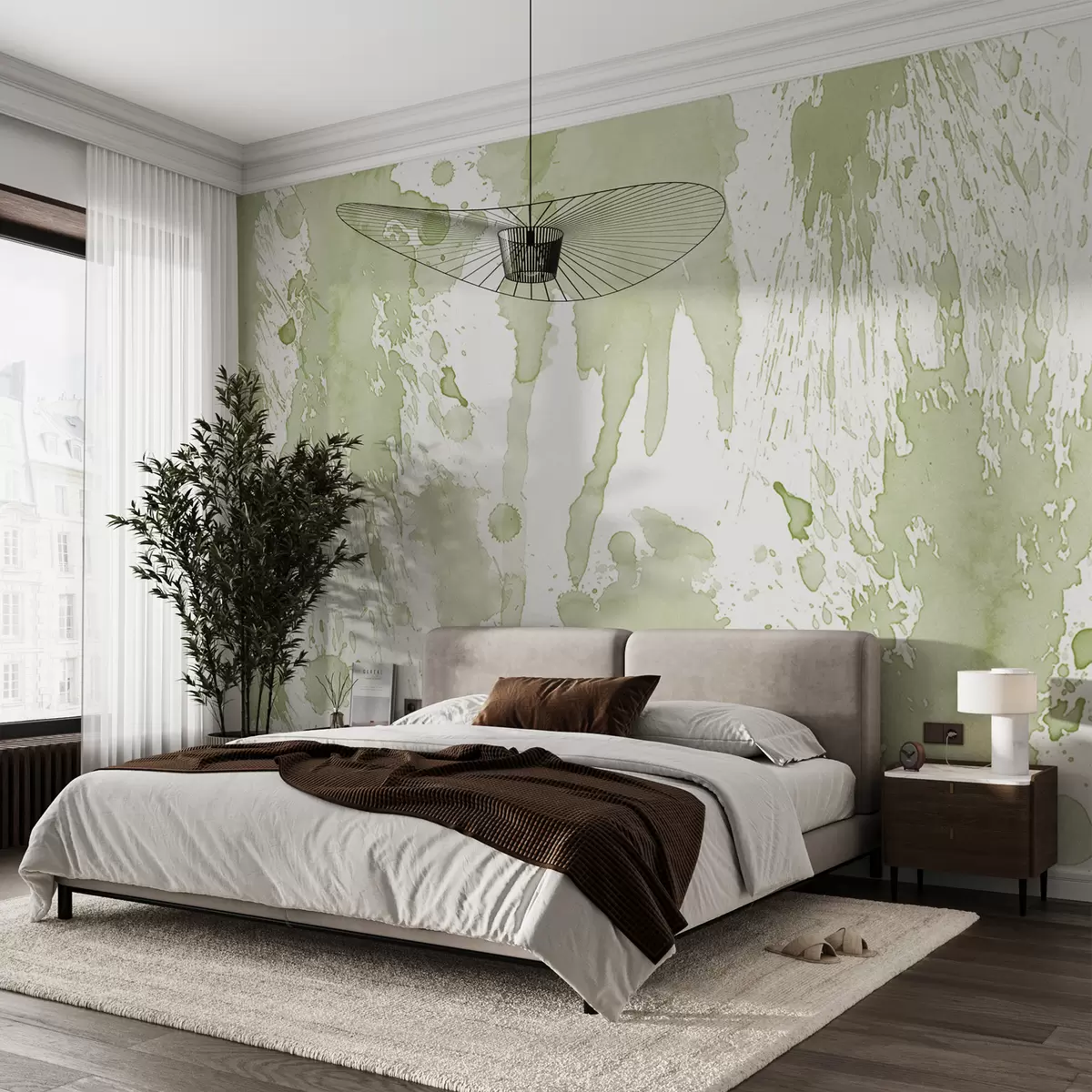 Fototapet Acuarela stropi, vopsea desen abstractizare, culoare verde Nr. w01285