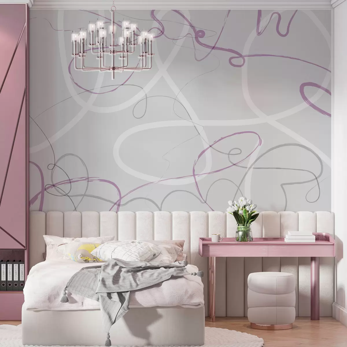 Fototapet Linii violet abstracte pe un fundal gri Nr. w01455v2