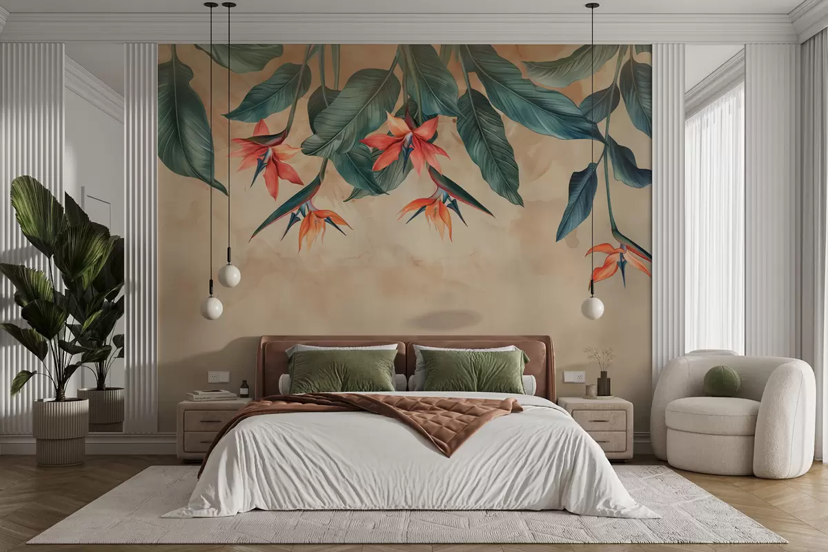 Fototapet Înflorire tropicală pe fundal bej acuarelă Nr. w01485