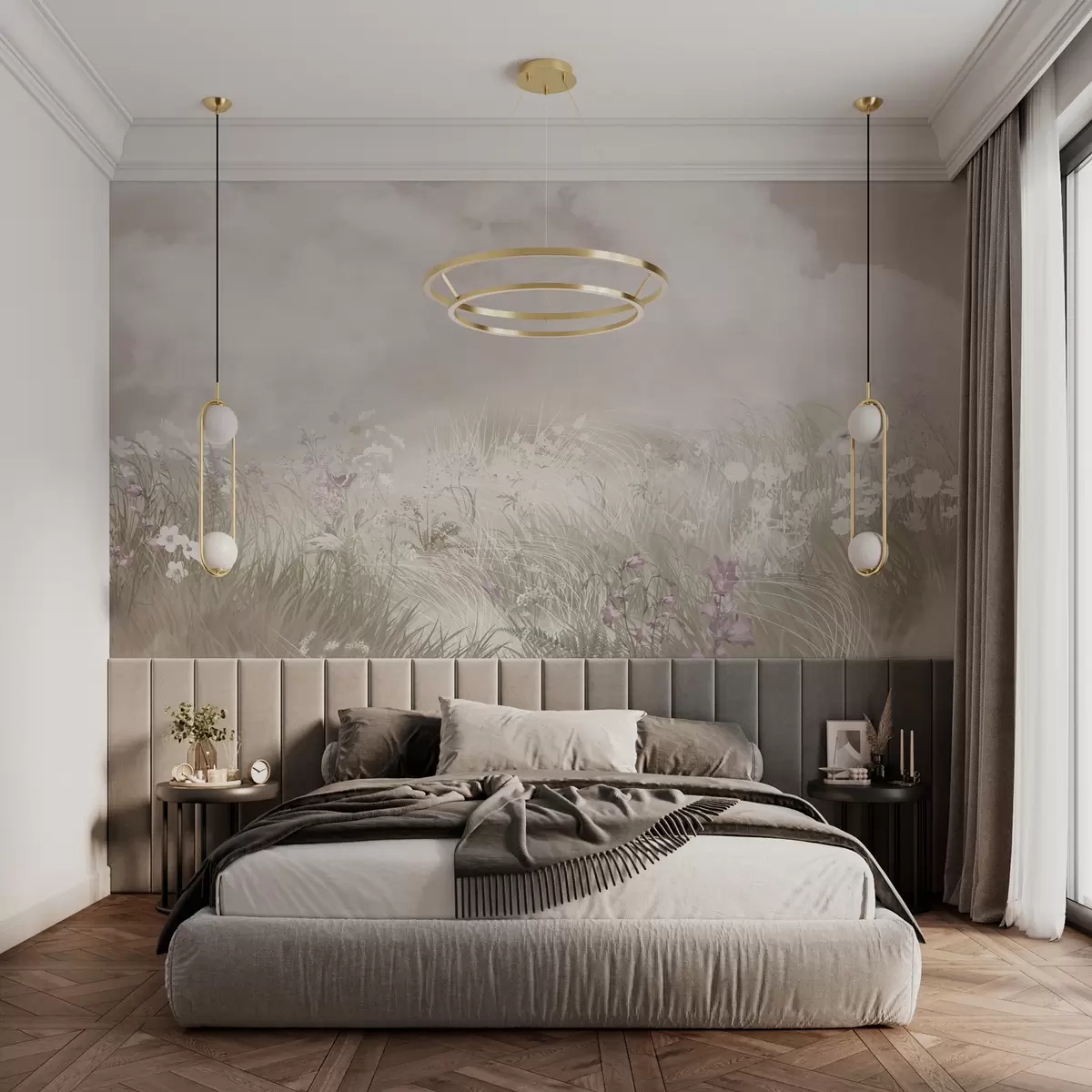 Fototapet Flori sălbatice și ierburi cu cer și nori roz pal Nr. w01624v4
