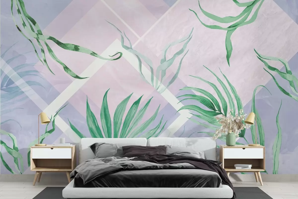 Fototapet Verdeață luxuriantă pe un fundal pastelat delicat Nr. w01625