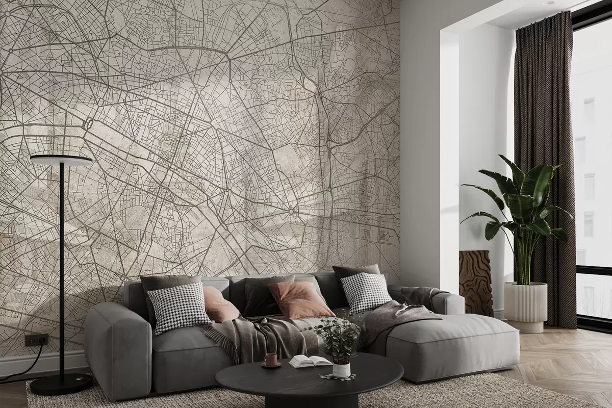 Fototapet Harta orașului Paris, desen liniar, arhitectură, Franța, culori bej Nr. w01697