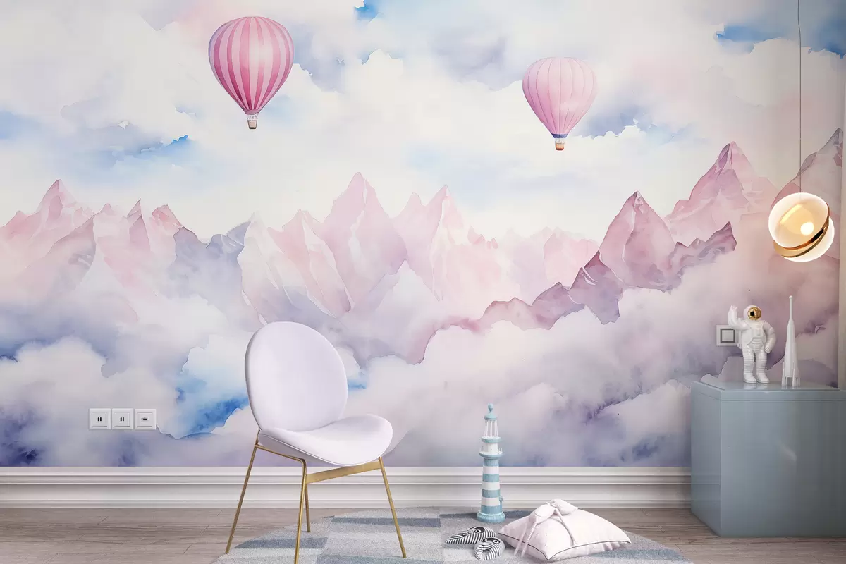 Fototapet Frumos peisaj montan cu baloane de aer, acuarelă Nr. w01792