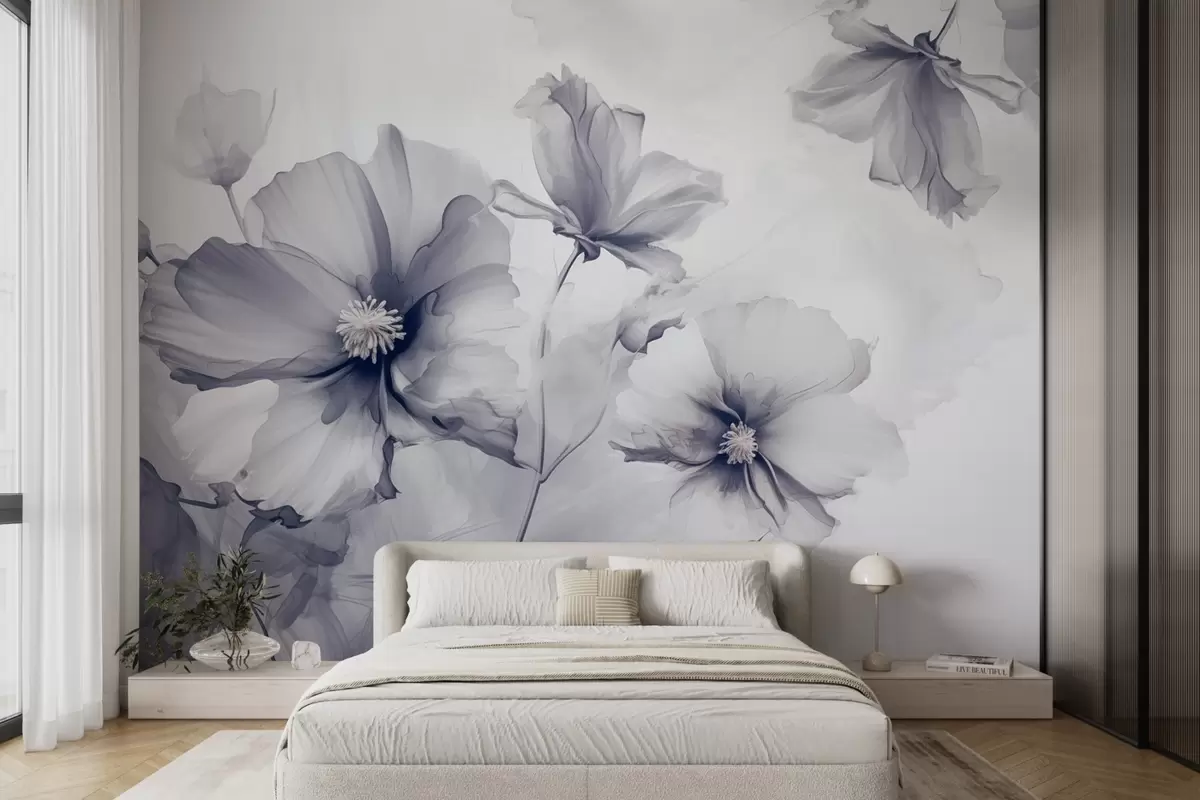 Fototapet Flori albastre translucide, aerisite, care se dizolvă în lumina dimineții Nr. w01938v2