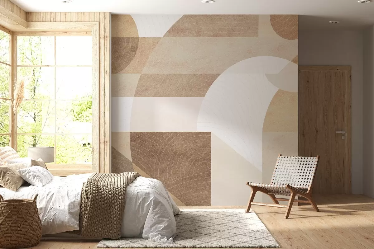 Fototapet Geometrie modernă cu forme abstracte, detalii texturate în tonuri de bej și maro Nr. w02140