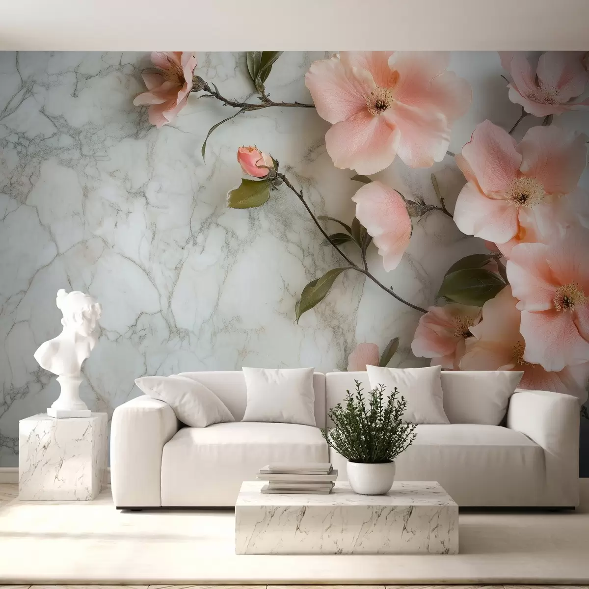 Fototapet Flori delicate pe fundal de imitație de marmură Nr. w02291
