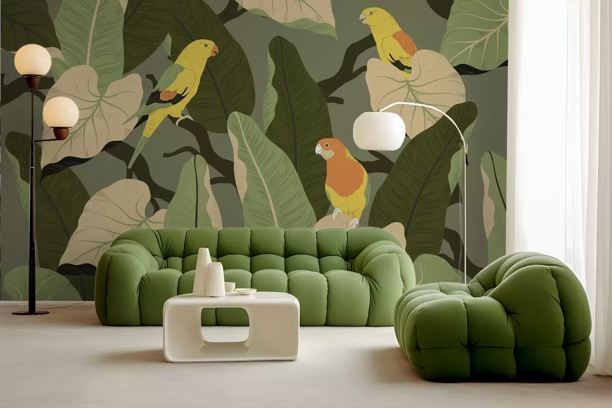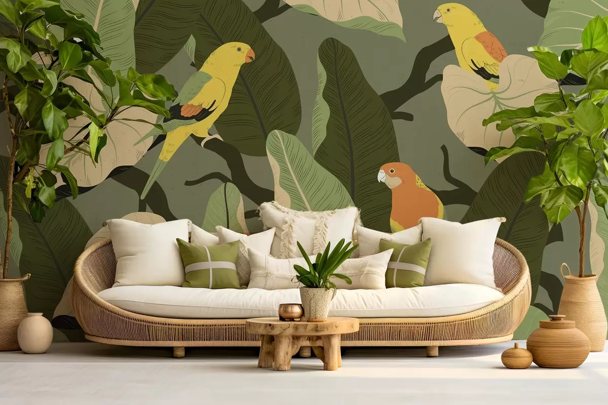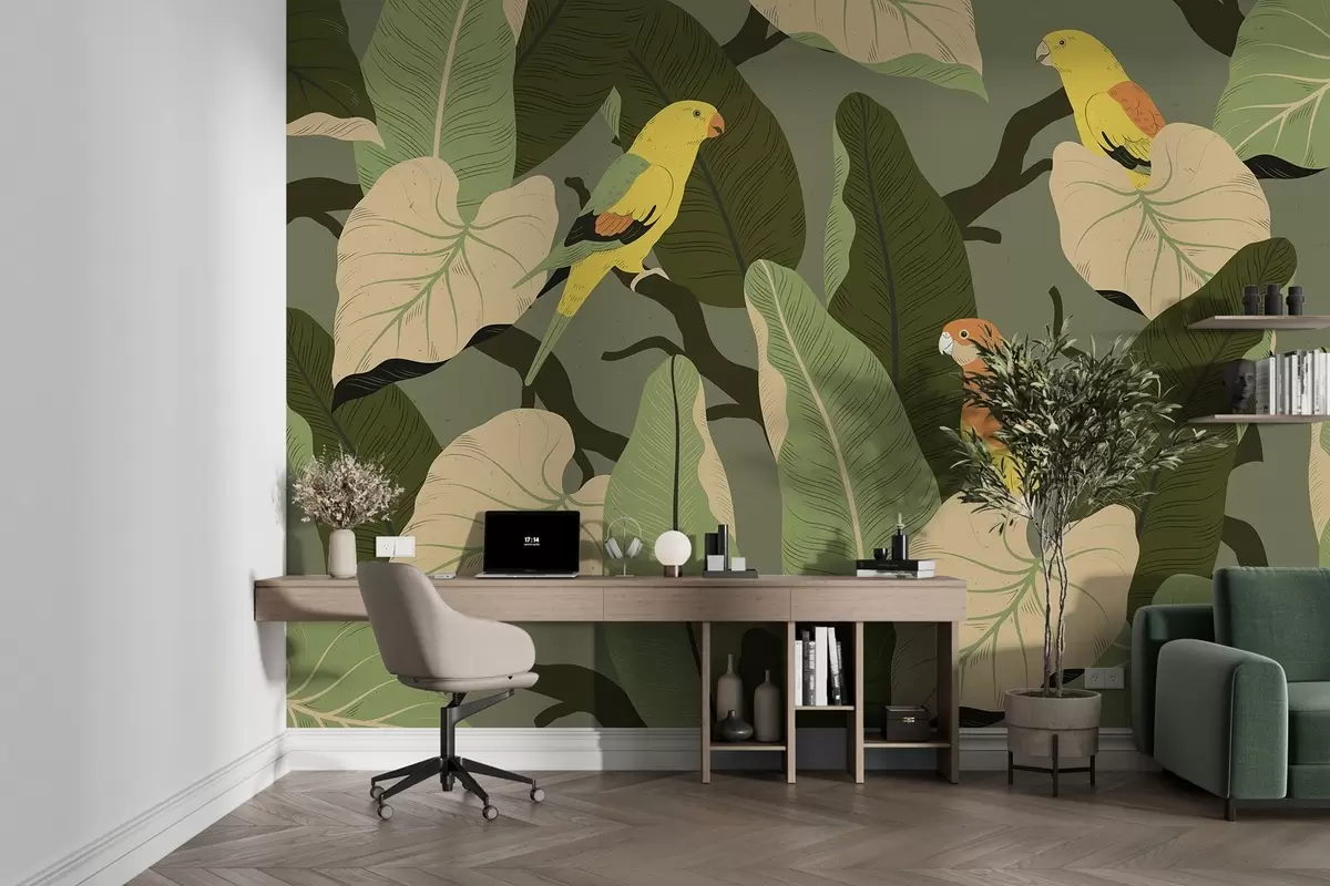 Fototapet frunze tropicale cu papagali Nr. w02402