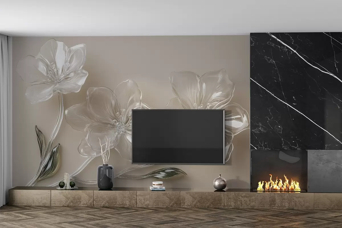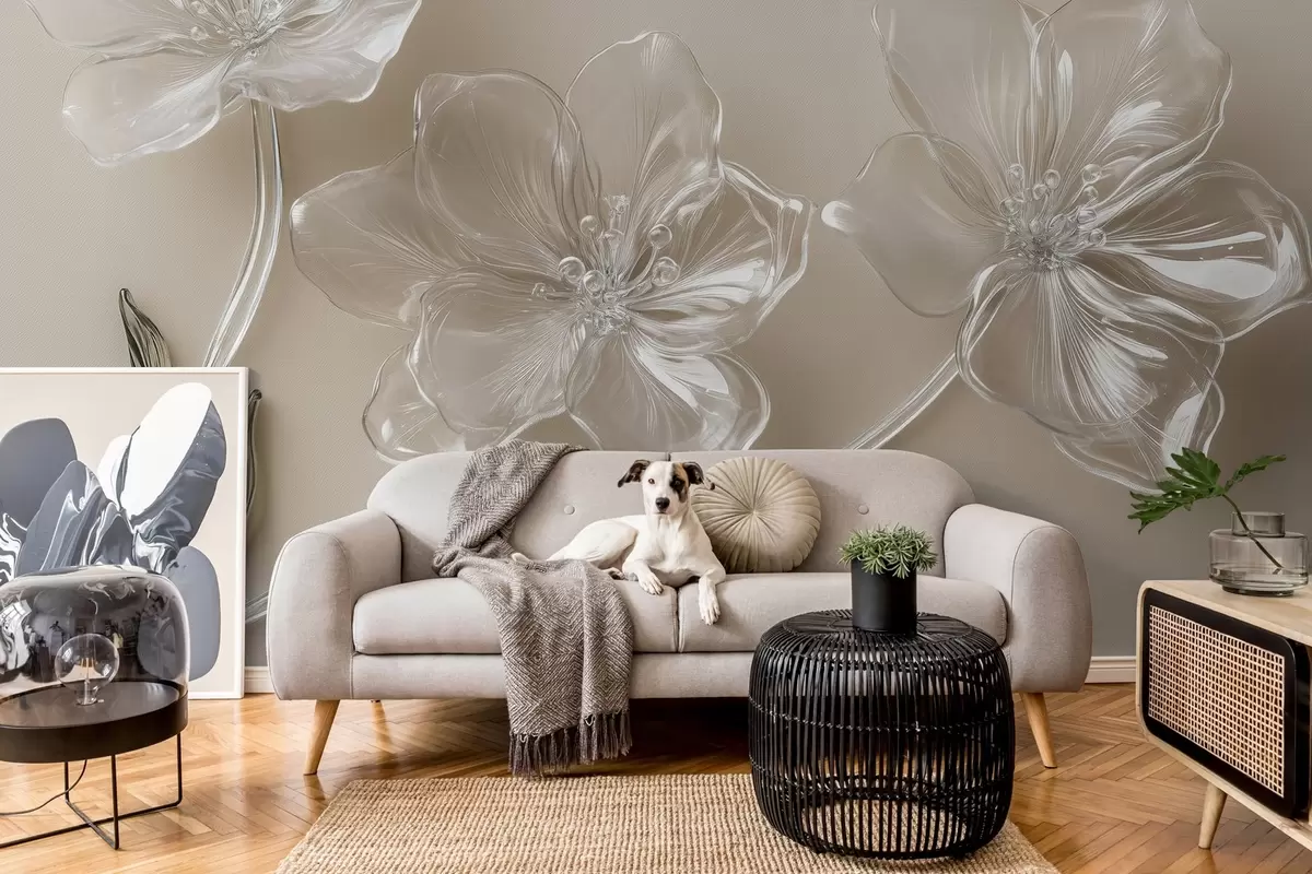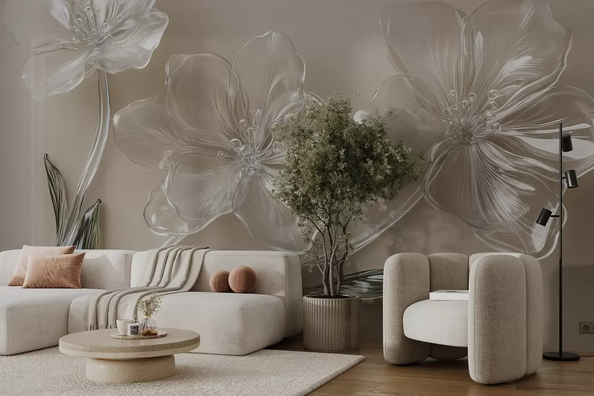 Fototapet flori mari imitație de sticlă pe un fundal bej Nr. w02518