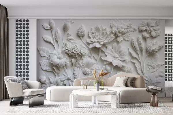Fototapet tapet în stil basorelief cu flori de grădină Nr. w02546