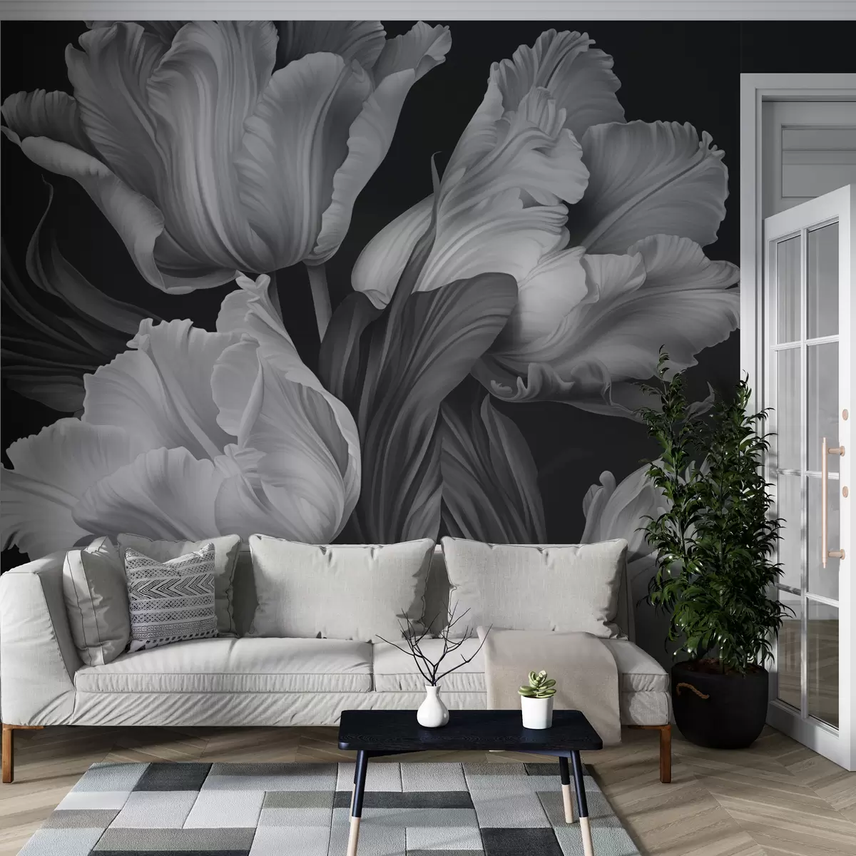 Fototapet Lalele albe și negre în stil fotorealistic Nr. w02557