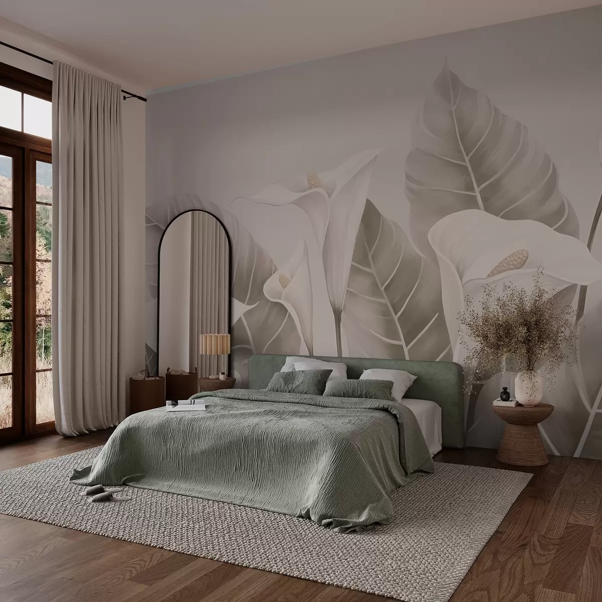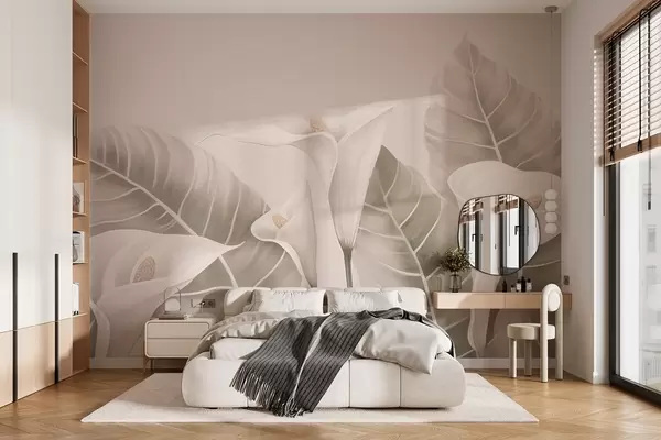 Fototapet crini calla pe un fundal de frunze Nr. w02568