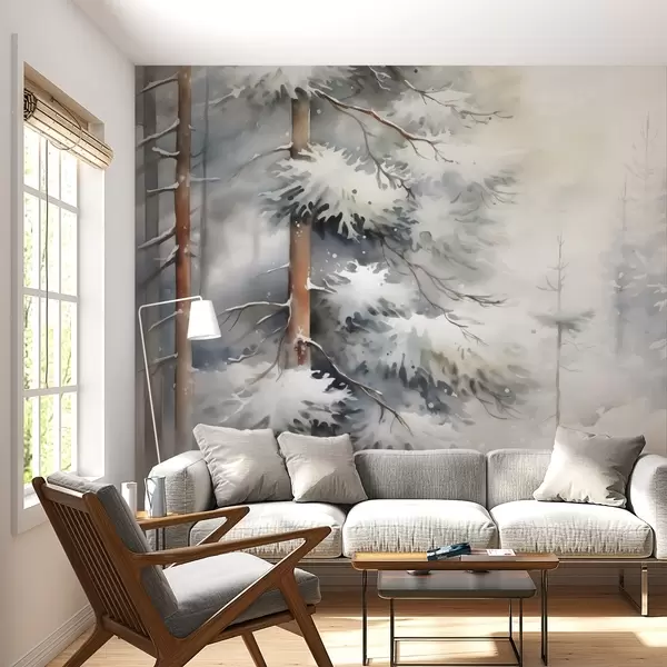 Fototapet Pădure de zăpadă imitație de acuarelă Nr. w02591