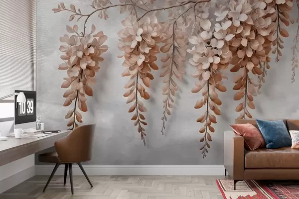 Fototapet Buchet luxuriant de flori pe un perete în stil acuarelă Nr. w02611v1