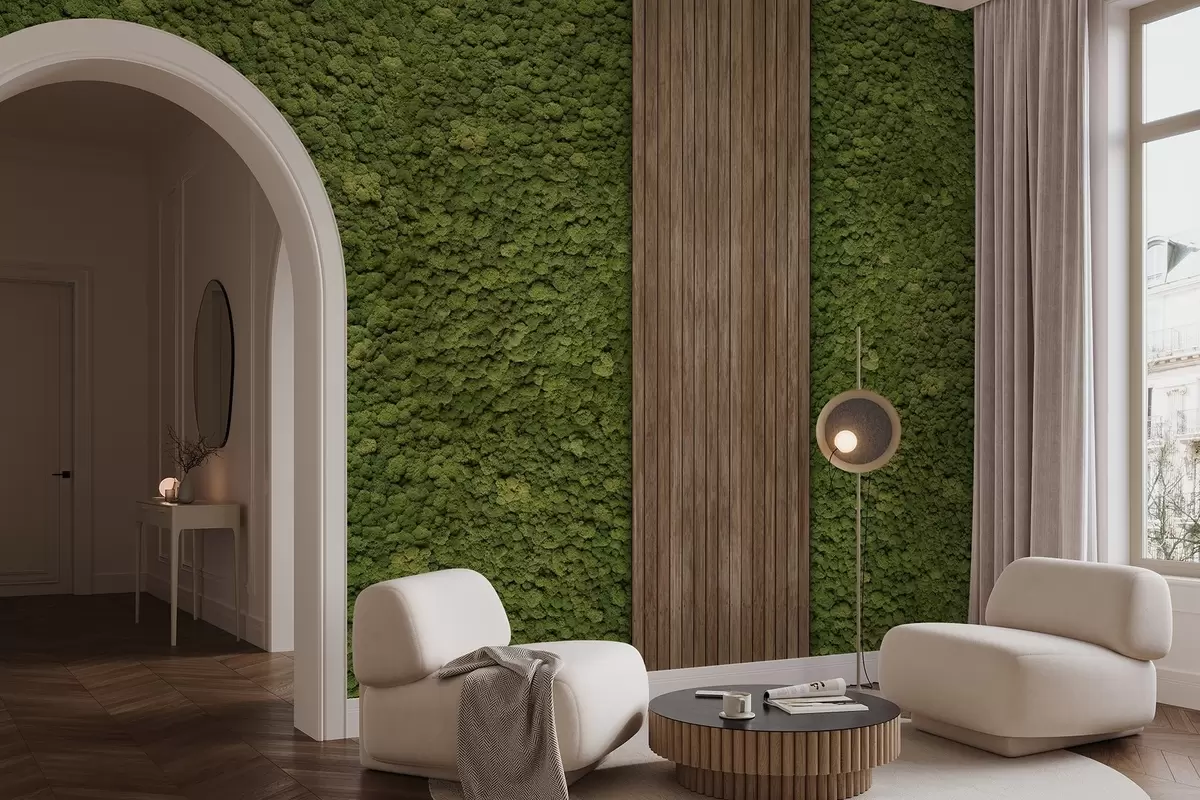 Fototapet Moss stil de perete cu panou de lemn, culori de măsline luxuriante Nr. w02656v3
