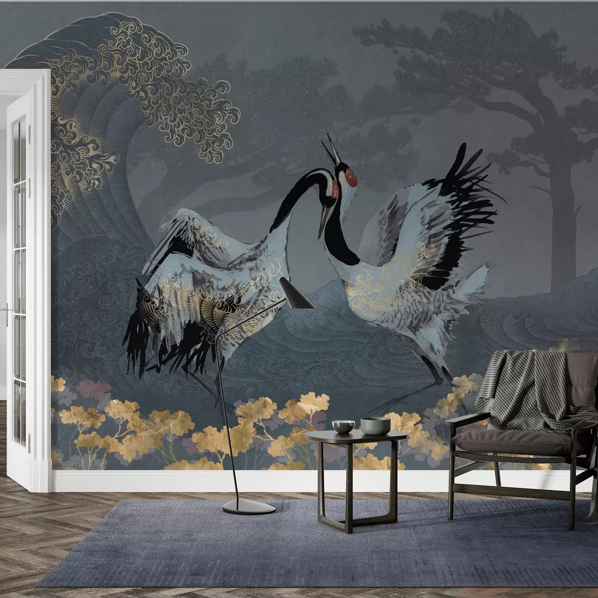 Fototapet Macarale, copaci și valuri cu elemente în stil chinezesc Nr. w02747