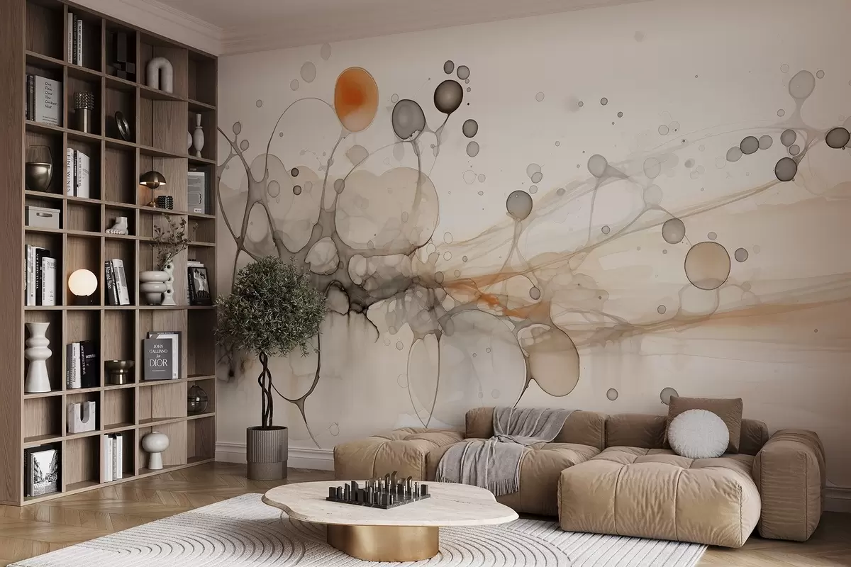 Fototapet Abstracție, minimalism, cerneală, fluid, culori bej și gri Nr. w02750