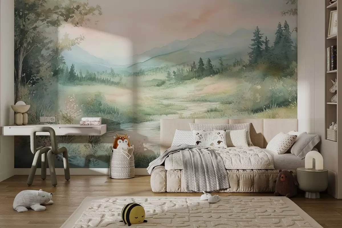 Fototapet peisaj acuarelă cu o cale și munți Nr. w02764