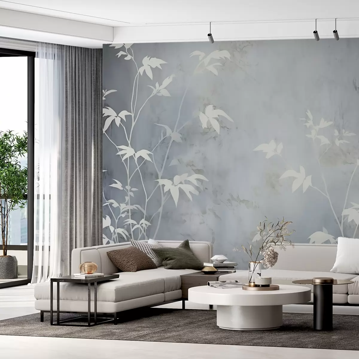 Fototapet Siluete albe de vegetație pe un fundal texturat pătat Nr. w02792