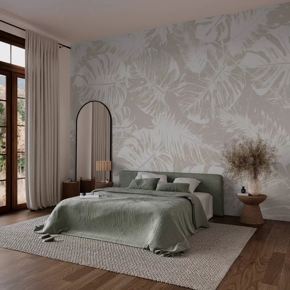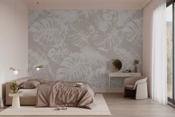 Fototapet Siluete de frunze albe pe un fundal texturat Nr. w02895v1