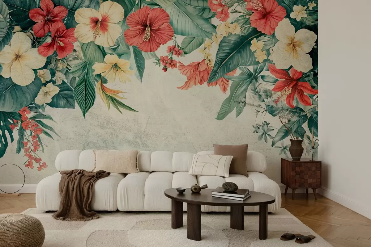 Fototapet flori tropicale și plante agățate de sus pe un fundal texturat Nr. w03023