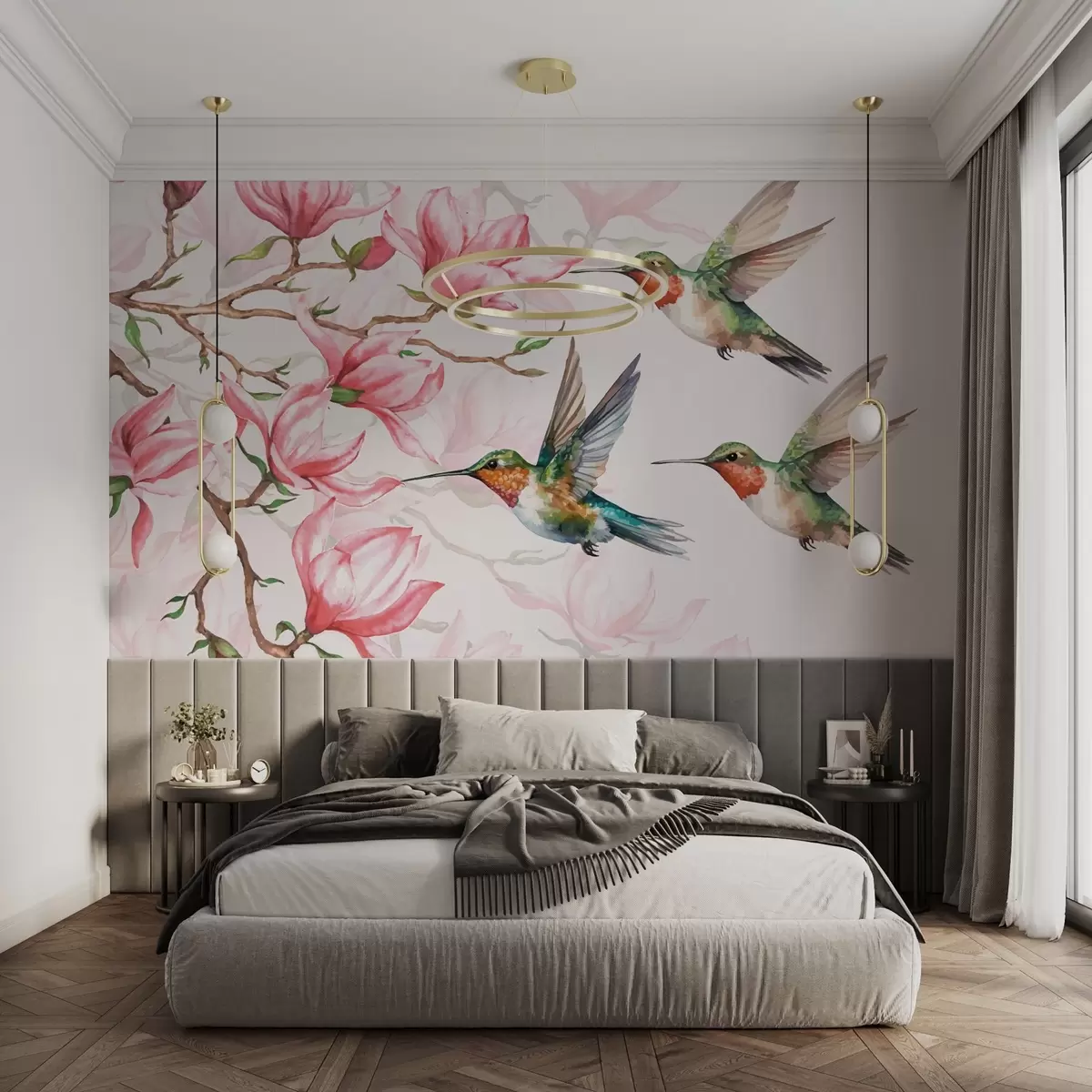 Fototapet Magnolii înflorite și colibri Nr. w03104