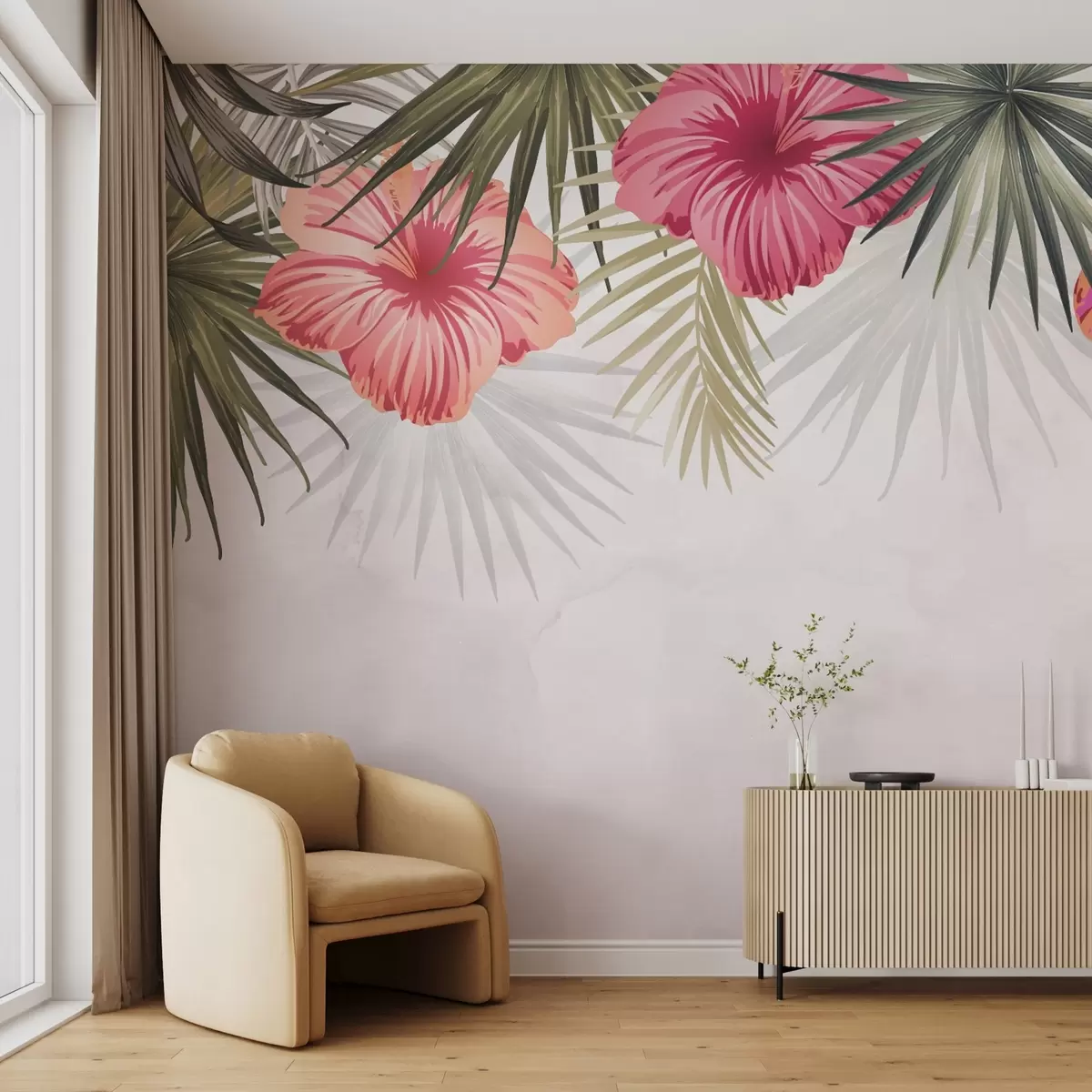 Fototapet Frunze și flori tropicale de sus Nr. w03106