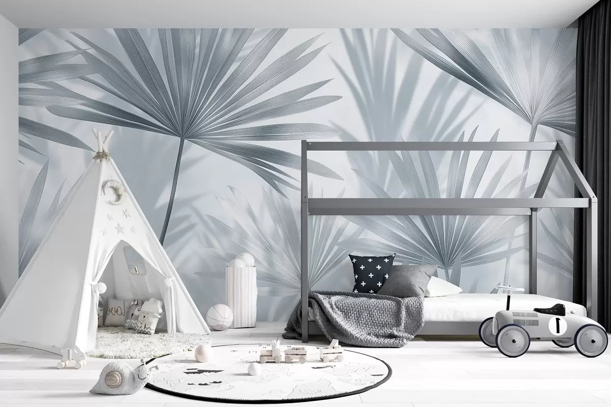 Fototapet Frunze de palmier, model floral, minimalism, tropical, culori gri Nr. w03152v1