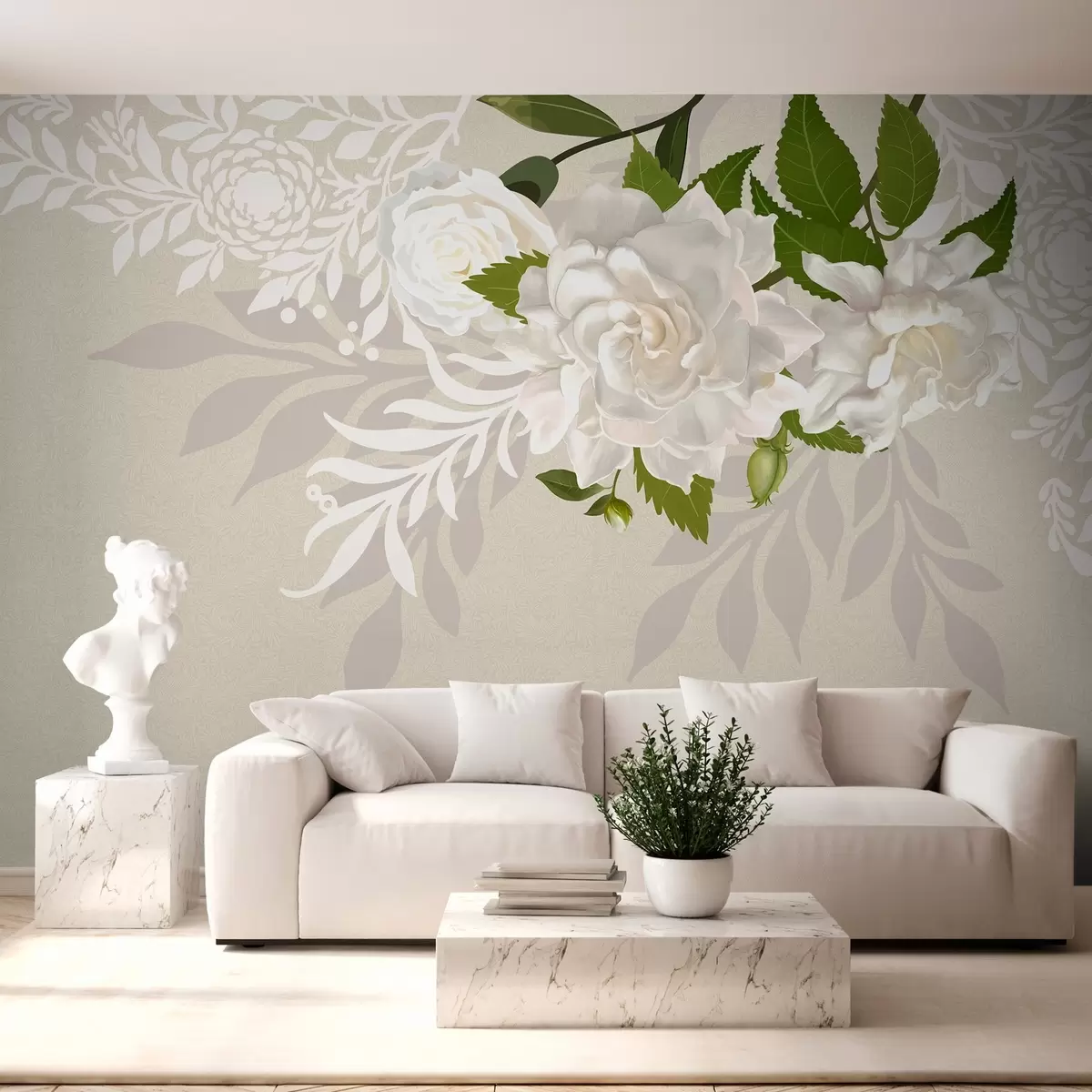 Fototapet trandafiri albi pe un fundal bej cu model Nr. w03453