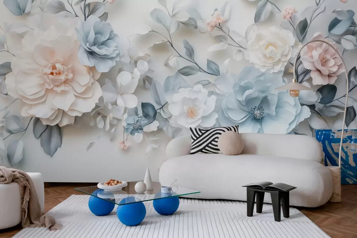 Fototapet flori aerisite delicate cu efect de volum în stilul picturii în ulei Nr. w03457