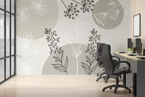 Fototapet Abstracție cu cercuri și plante în tonuri verzi Nr. w03483v1