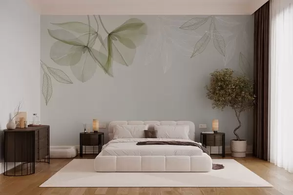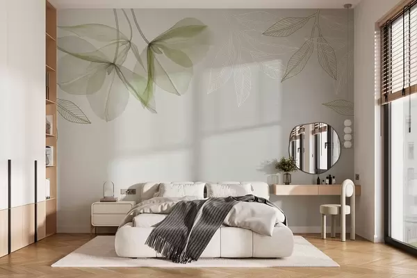 Fototapet flori și frunze delicate translucide în tonuri kaki Nr. w03616v2