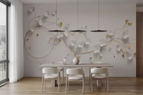 Fototapet Ramură volumetrică cu flori și frunze Nr. w03653