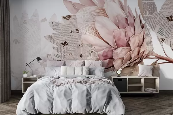 Fototapet Flori Protea, arta ziarelor, floral, tropical, culori pastel bej Nr. w03667v4