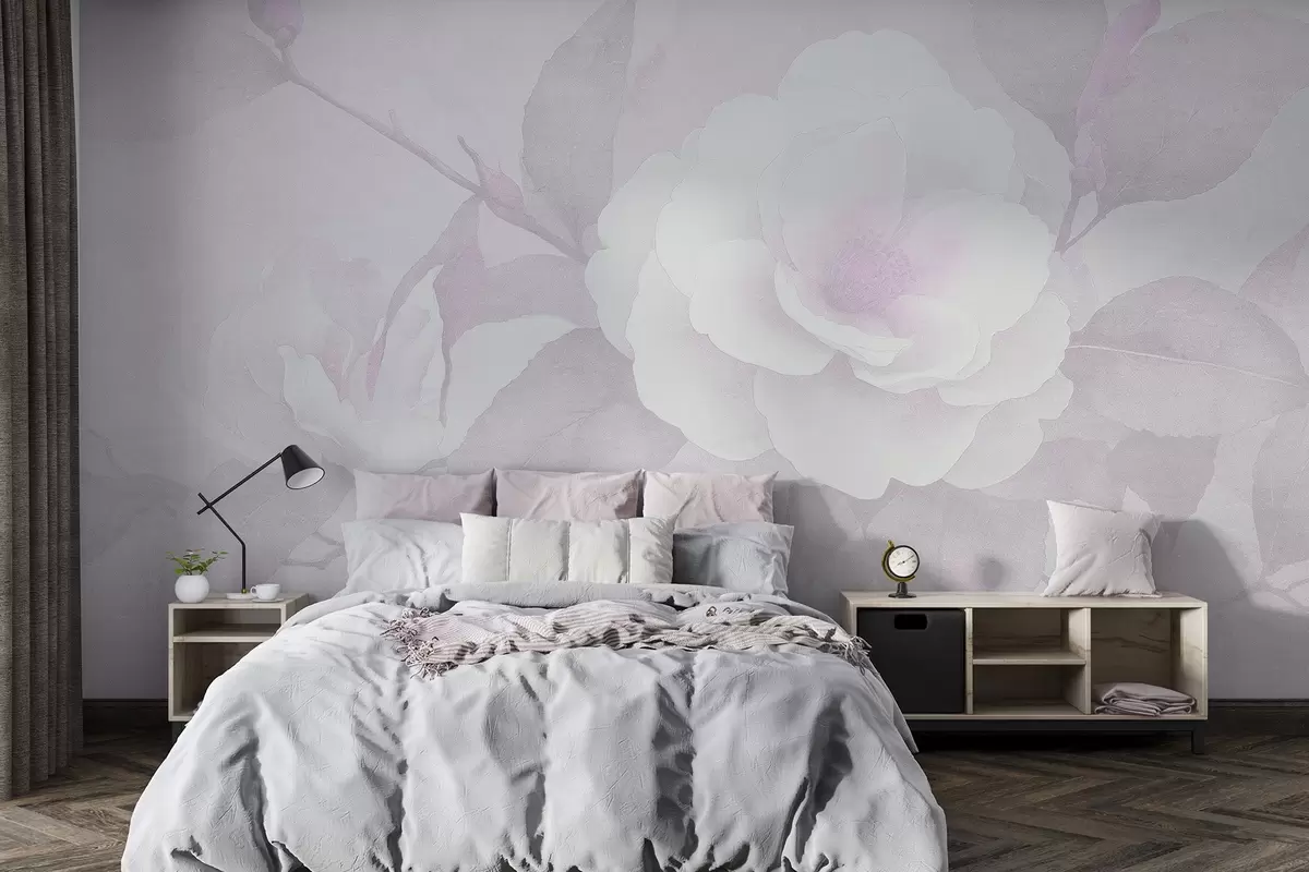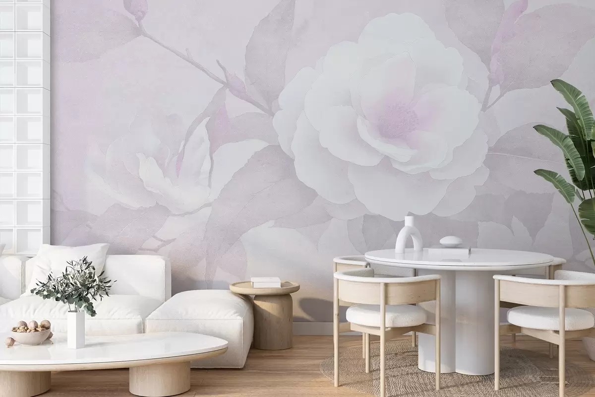 Fototapet Pastel moale cu flori de camelie pe ramură, culori roz Nr. w03760v2