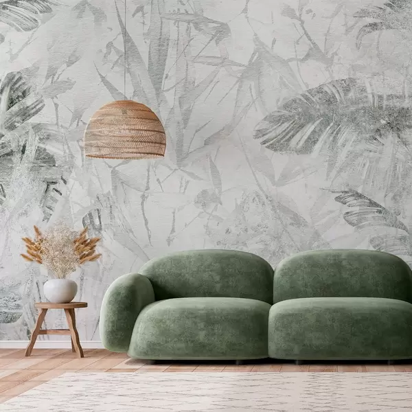 Fototapet Abstracție florală în stil grunge cu imitație de abraziune, nuanțe de verde Nr. w03926v2
