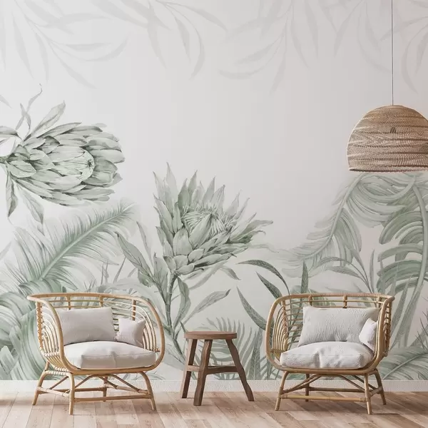 Fototapet Protea printre frunze tropicale, nuanțe de albastru Nr. w03952v3