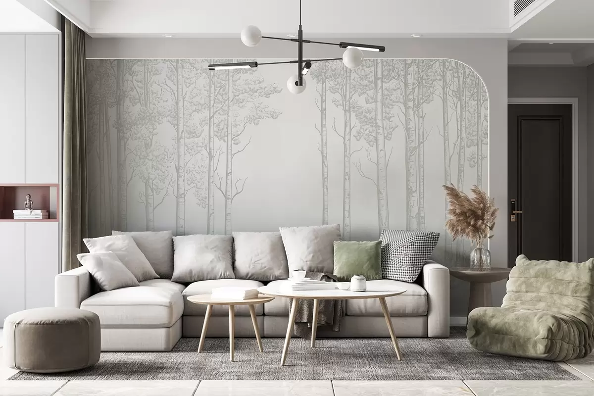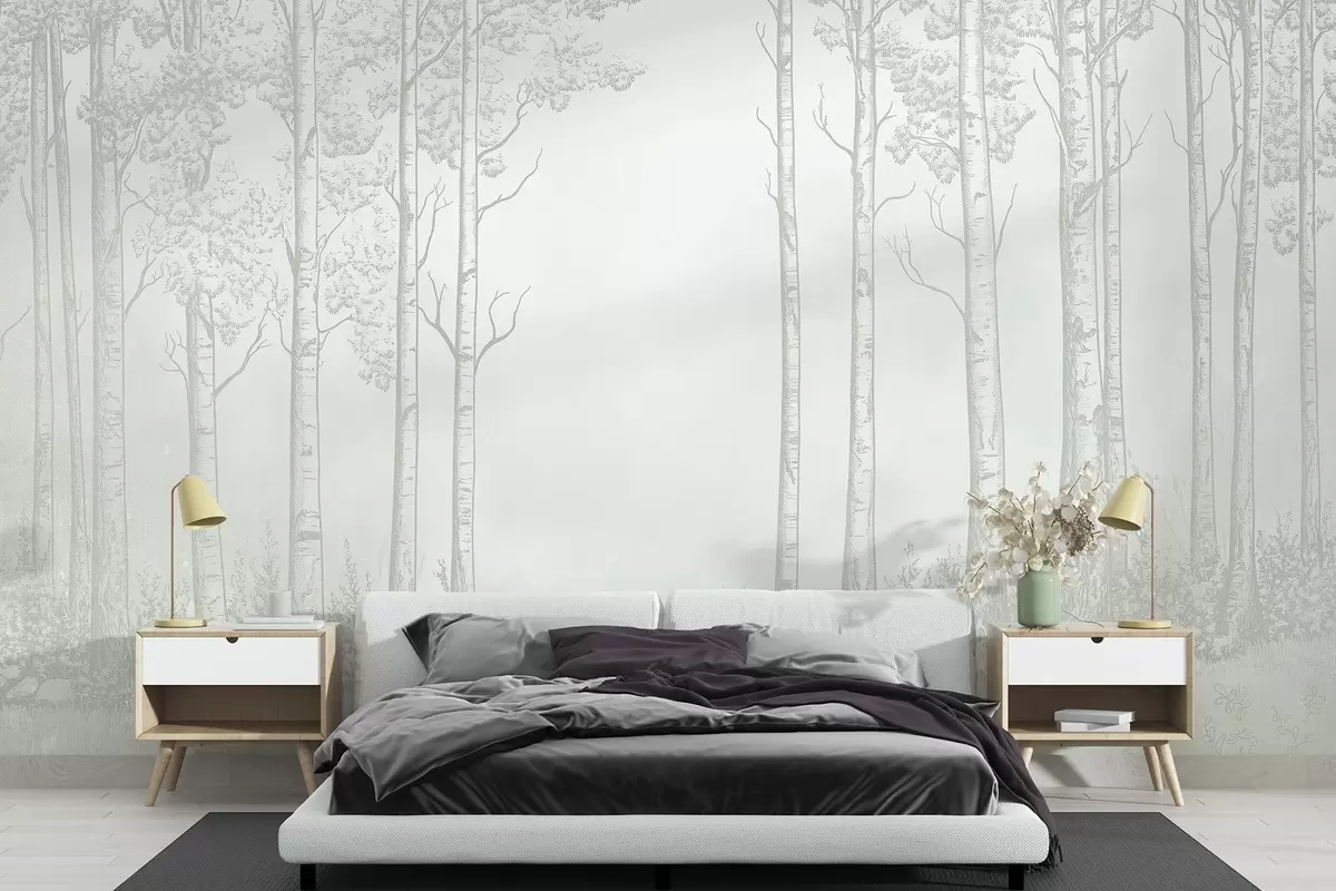 Fototapet Pădure cu mesteacăn, minimalism, natură, paletă de culori verzi Nr. w04009v1